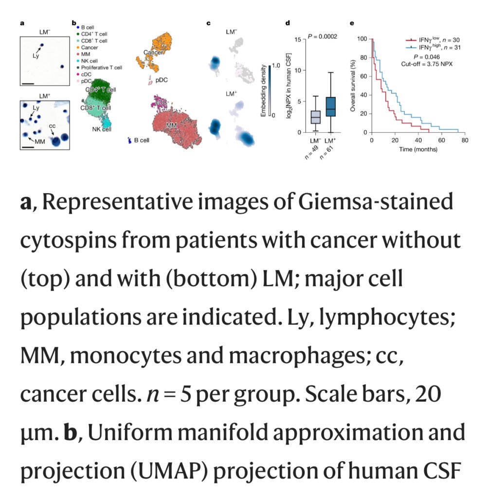 Leptomeningeal metastasis—a deadly spread of solid tumors to the cerebrospinal-fluid-filled membranes around the brain and spinal cord—is characterized by strong immune infiltration and high levels of interferon-gamma (IFNγ). Researchers developed mouse models of lung cancer, breast cancer, and melanoma with leptomeningeal metastasis and found that mice lacking IFNγ or its receptor couldn’t control tumor growth. […]